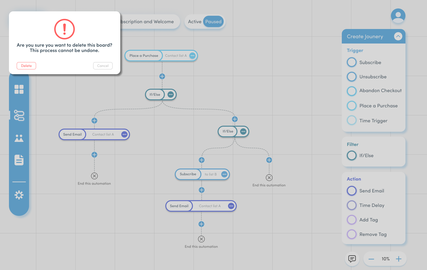 Journey page zoomed at 10%, hovering.